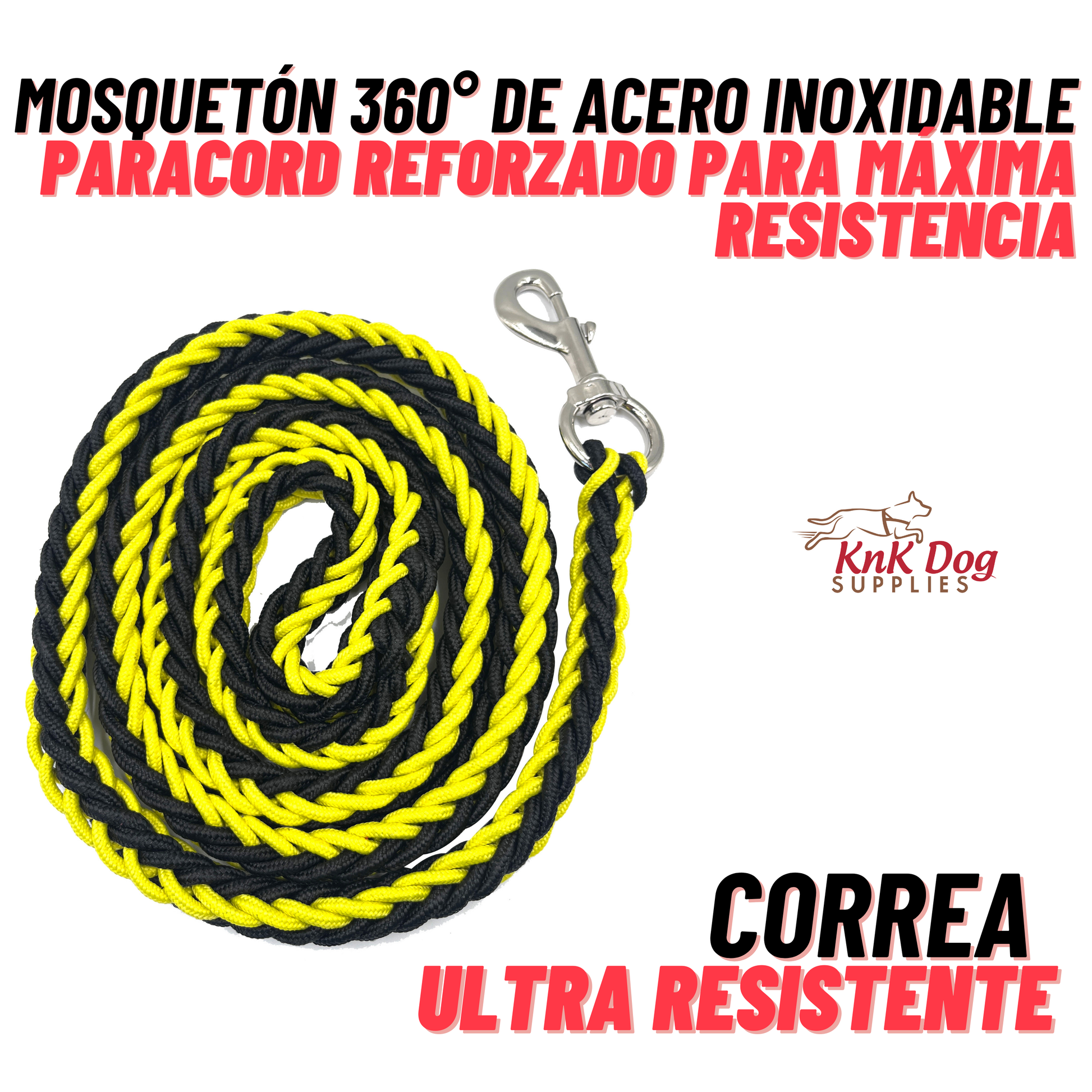 Su estructura con paracord trenzado de alta resistencia y un mosquetón metálico sólido te brindan seguridad y control total en cualquier situación.